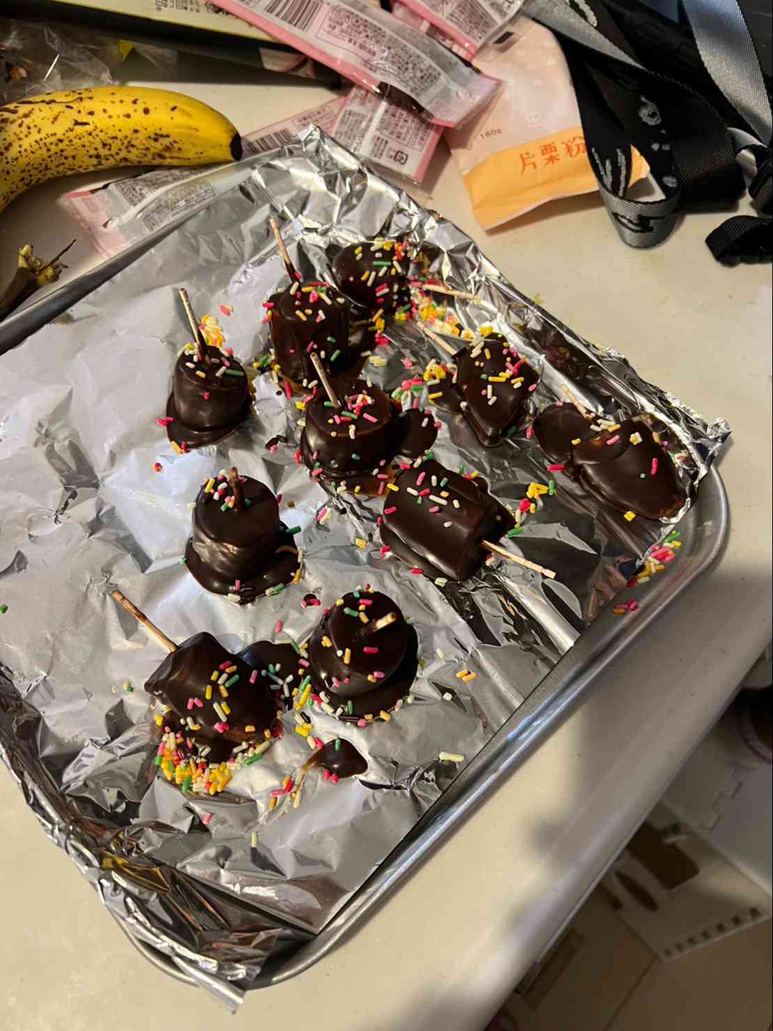 帰宅後はクッキーとチョコバナナを作り